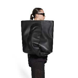 Le Sac Cabas Glove Grand Modèle en cuir de veau noir figure dans plusieurs looks de la Collection Balenciaga pour l'Été 2023
