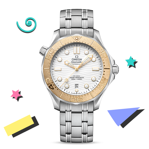 Pour les Jeux Olympiques de Paris 2024, OMEGA aura le privilège d’être le Chronométreur Officiel pour la 31e fois depuis 1932. Afin de célébrer cet événement historique, cette Seamaster Diver 300M se distingue par son design sportif en blanc, en or et en noir, qui rappelle les couleurs officielles des Jeux Olympiques. Le boîtier de 42 mm en acier inoxydable et or Moonshine™ 18K est rehaussé d'une lunette avec une échelle de plongée en relief positif structurée au laser et d’un point de Super-Luminova à 12 heures. Le cadran en céramique blanche gravée au laser, protégé par un verre saphir bombé résistant aux rayures, est orné d'une finition mate et d'un motif vagues poli en relief. Outre les mentions en décalque gris foncé, la date à 6 heures est gravée avec la typographie Paris 2024 en noir. Tous les index sont en or Moonshine™ 18K poli au diamant avec du Super-Luminova blanc. Les aiguilles facettées quant à elles, sont revêtues de PVD en or Moonshine™ 18K, dont l'aiguille centrale des secondes arborant le logo Paris 2024. Au dos, le fond de boîtier commémoratif en acier inoxydable comprend le système NAIAD LOCK breveté OMEGA. Il présente également un médaillon estampillé du logo Paris 2024 poli miroir et givré en or Moonshine™ 18K, ainsi que la mention estampillée, « Paris 2024 » et les anneaux olympiques, qui ont un fini poli miroir sur une base givrée. La montre est montée sur un bracelet en acier inoxydable doté du nouveau système de changement rapide OMEGA ainsi que d'une boucle déployante extensible brevetée dotée d'un fermoir à crémaillère et d'une extension supplémentaire pour la plongée. Elle est animée par le calibre OMEGA Co-Axial Master Chronometer 8800 et présentée dans un écrin exclusif.