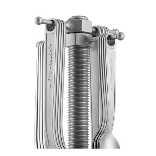Service à couverts composé de quatre cuillers, quatre fourchettes, quatre couteaux, quatre petits cuillers en acier inoxydable 18/10. Porte-couverts en acier inoxydable 18/8.