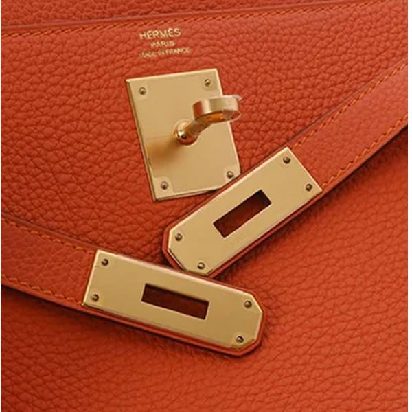 The Hermes Kelly Handbag, from the iconic Kelly line, is a symbol of timeless elegance and luxury. Crafted from supple Togo leather in a vibrant orange poppy color, this handbag exudes sophistication and style. The gold hardware, including the signature turn-lock closure, adds a touch of opulence, making it a highly sought-after fashion accessory. Condition: The Hermes Kelly Handbag is in overall excellent condition, with only a few traces of use that are barely noticeable. Despite its pre-loved status, this handbag remains in remarkable shape, showcasing the exceptional quality and durability of Hermes craftsmanship. With its stunning design and minimal signs of wear, this Kelly handbag is a treasure to behold and a must-have for any fashion enthusiast. We recommend that you look at all the pictures before making your purchase to ensure that you are satisfied with the condition of the item. Certifié
