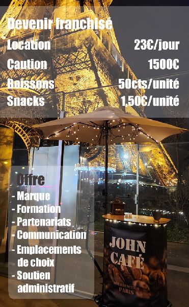 JOHN CAFÉ™ is a network of friendly outlets selling 100% arabica fair trade organic coffee to go, made in France. 10% of the company's capital is paid up to support its development. Certifié