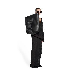 Le Sac Cabas Glove Grand Modèle en cuir de veau noir figure dans plusieurs looks de la Collection Balenciaga pour l'Été 2023